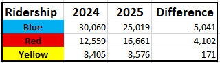 Total MAX system ridership dropped by just over 7,000 from a year ago, to 438,926 boardings in May.